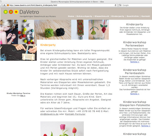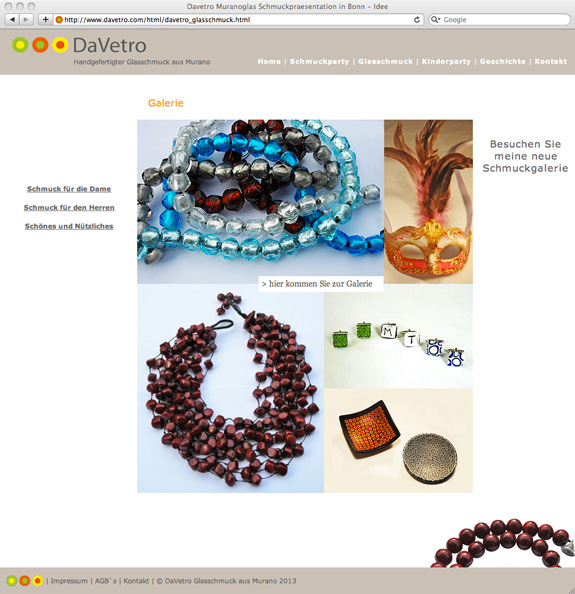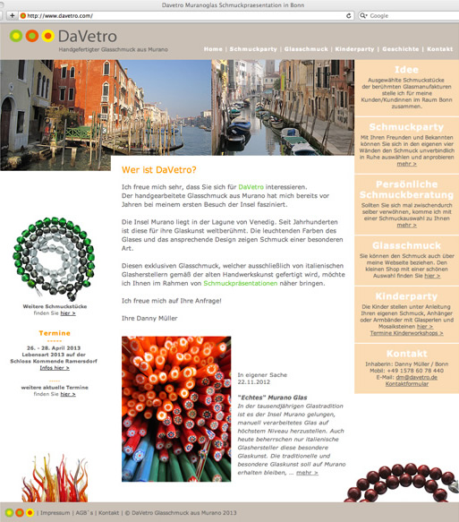 Glasschmuckverkauf in Bonn. 2012 wurde für eine neue Geschäftsidee eine Webseite konzipiert und erstellt.