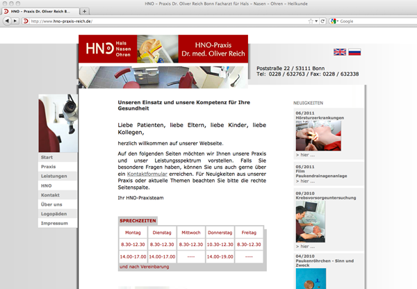 HNO-Praxis im Zentrum von Bonn. 2009 wurde für eine Neueröffnung